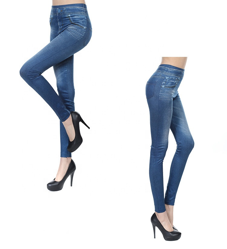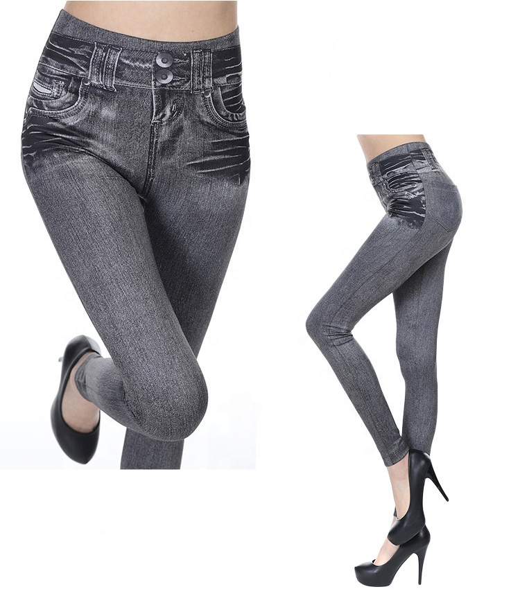Leggings en jean taille haute sans coutures, noir, gris, bleu, extensibles, pour femme