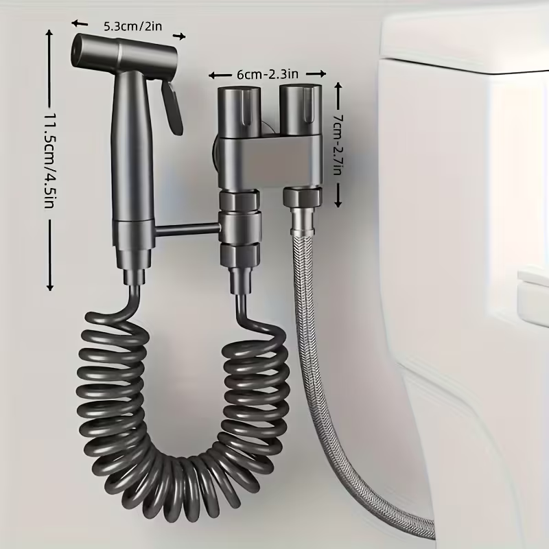 Upgrade your bathroom with this versatile and practical Toilet Flush Spray Gun Faucet Set, designed to make cleaning faster, easier, and more hygienic. Featuring a dual-purpose angle valve with one inlet and two outlets, this system allows you to control both your toilet water supply and handheld spray gun from a single connection.